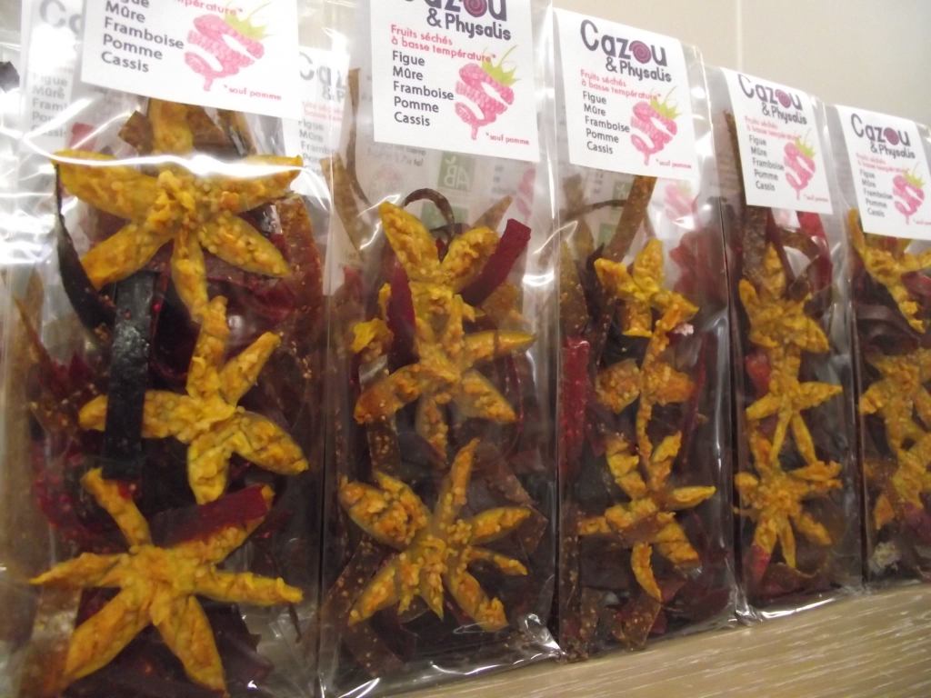 Les Cazous, qu’est-ce que c’est ? Les bonbons 100% fruits de Cazavet, qu’on peut emporter partout, au cas où! Ce sont des purées de fruits crus déshydratés à basse température. Le poids du produit fini équivaut à 10% du poids du fruit frais et conserve la plupart de ses qualités nutritionnelles. Un délicieux bonbon à transporter partout, dans le cartable ou le sac de randonnée !